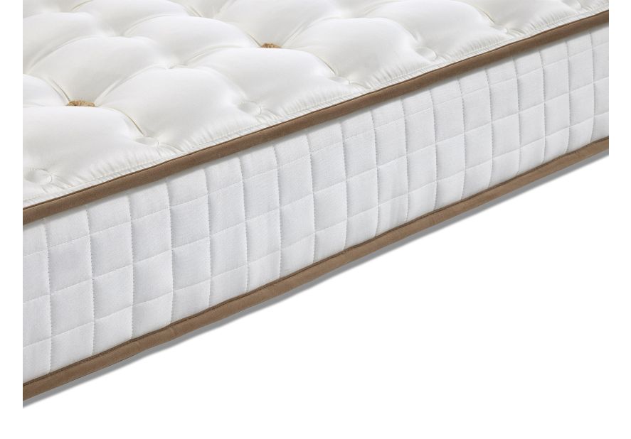 El tapizado con capitoné hecho a mano asegura la unión perfecta de todos los rellenos del colchón generando un confort y durabilidad total.
